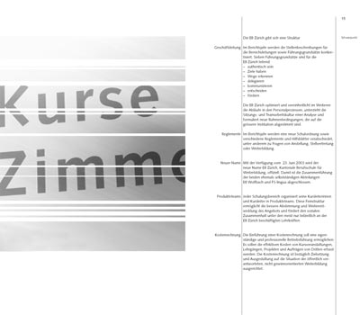 Jahresbericht der EB Zürich – Doppelseite aus dem Inhalt. |
